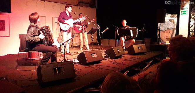 Mit ihren Nachdichtungen und Interpretationen und der verstärkenden kleinen Bandbesetzung durchdringen sie das Werk der drei Großen, lassen sie miteinander korrespondieren, mischen sich selbst dabei ein, flechten ein Gewebe aus mehrsprachigem Sound und Gedanken, die zeitlos durch den Abend schneien.